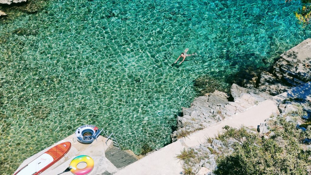 The house is located directly on a secluded, almost private, beautiful cove with crystal clear waters.